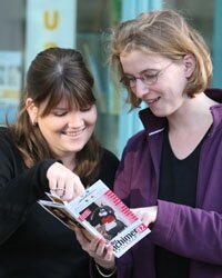| Sabrina Hesse und Christine Galle blättern im aktuellen Achimer Kalender. |
